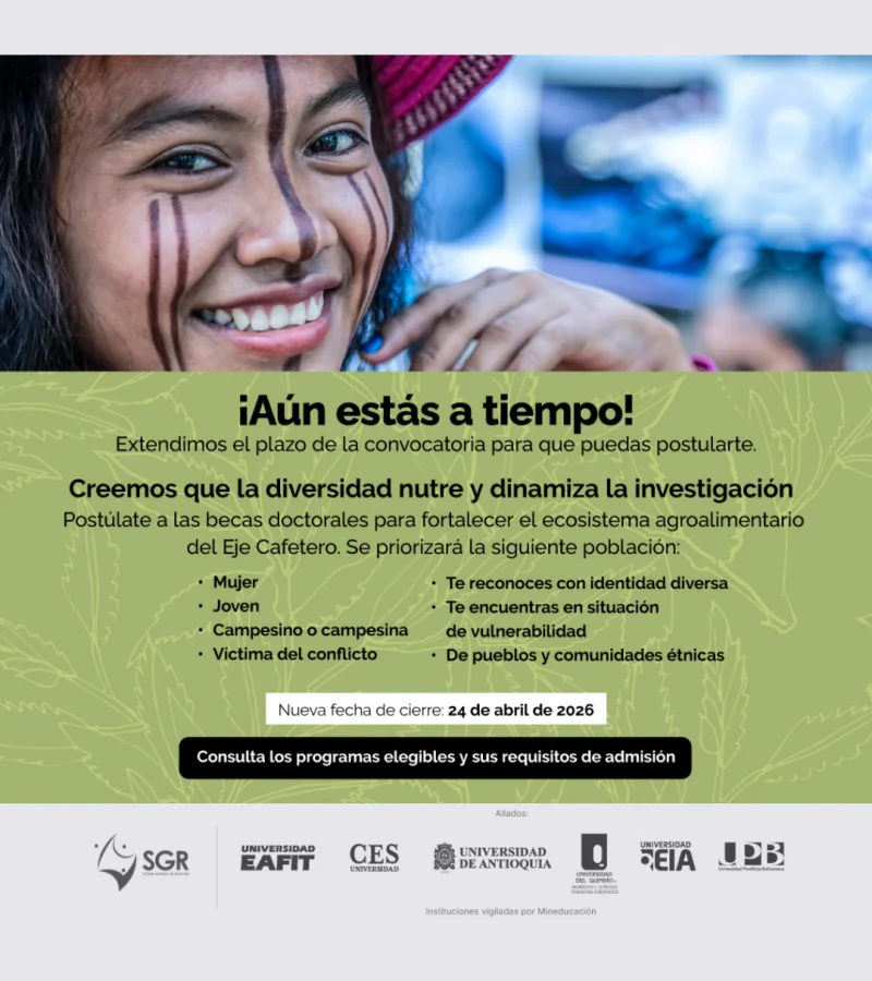La Alianza conformada por Universidad CES, Universidad EAFIT, Universidad de Antioquia, Universidad del Quindío, Universidad EIA y Universidad Pontificia Bolivariana invita a profesionales colombianos a postularse al proceso de selección de cincuenta (50) beneficiarios de becas, para cursar estudios de doctorado en programas elegibles de la presente convocatoria, mediante crédito educativo condonable.