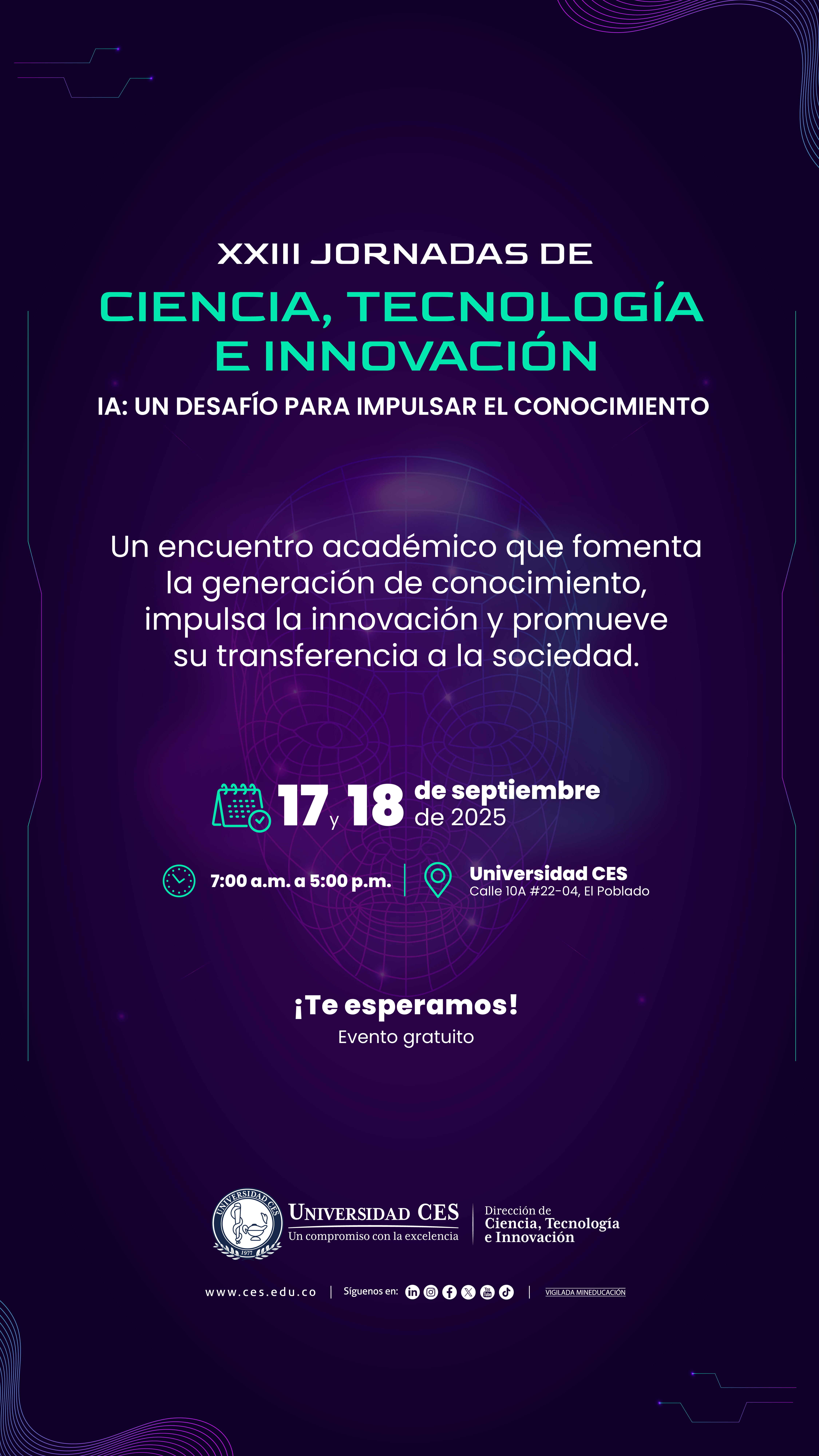 La programación de las XXIII Jornadas de Ciencia, Tecnología e Innovación está diseñada para sumergirnos en el impacto y las posibilidades de la inteligencia artificial en diferentes campos del conocimiento. Durante ambos días, abriremos con paneles temáticos que reunirán voces expertas para debatir, inspirar y proponer soluciones innovadoras.