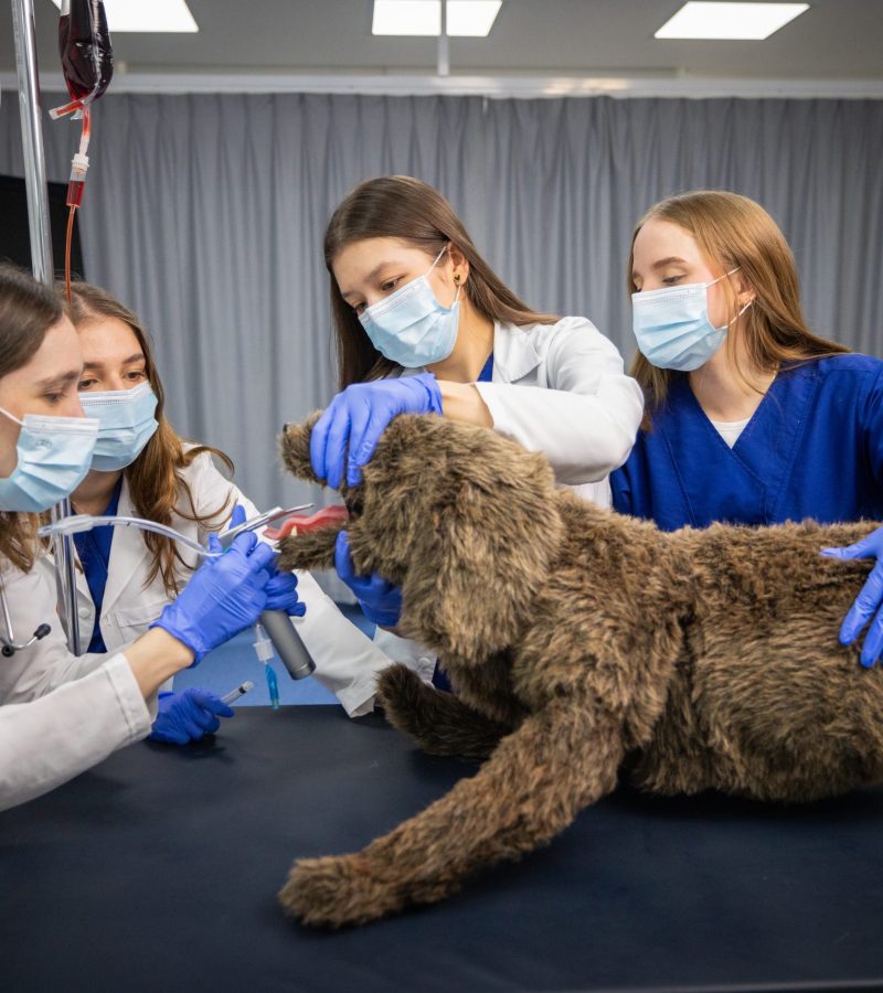 Cuenta con simuladores de entrenamiento por partes (mamas, genitales masculinos y femeninos, simuladores de ruidos cardíacos, pulmonares y cabezas de intubación adultas y pediátricas). Además, ofrece modelos para la adquisición de destrezas veterinarias, auscultación, intubación y exploración física en pequeñas especies.