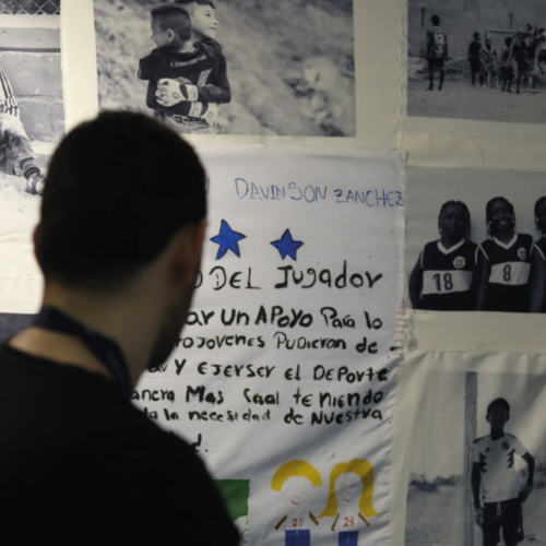 “Toda la muestra que está presente en esta exposición ha sido un proceso de recolección de elementos y objetos referentes al fútbol para resignificar el valor que este deporte nos brinda. Además, el proyecto Una Cancha Llamada Colombia ha impactado a más de 10.000 personas en todo el país y a más de 50 iniciativas sociales por medio de visibilizarlos, entregar indumentaria como balones, guayos, entre otros y capacitación para sus líderes”, comentó el artista Oscar Cardona Álvarez.