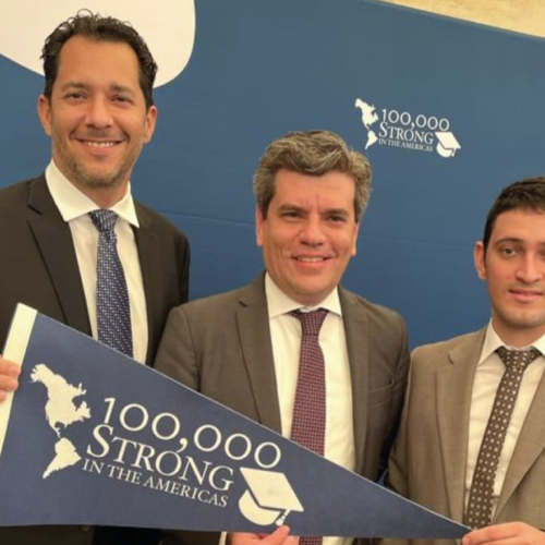 El programa 100K strong hace parte de las iniciativas del Fondo de Innovación 100K Strong in the Americas, para fomentar la capacitación e intercambio de estudiantes y docentes en soluciones climáticas, energía sostenible, transformación digital, salud, industrias creativas y STEM. Todo ello, con el apoyo del Ministerio de Ciencia, Tecnología e Innovación de Colombia (MinCiencias) y CAF -banco de desarrollo de América Latina- en alianza con la Oficina de Asuntos del Hemisferio Occidental del Departamento de Estado de los EE. UU.