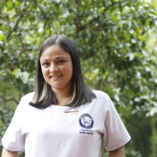 Inició en el semestre 2020-2 y su carrera ha estado marcada por grandes desafíos: en su primer semestre aún trabajaba en la Clínica León XIII y atendía pacientes diagnosticados con COVID-19. De esta época recuerda a Don Jaime, un paciente que le cambió la vida.